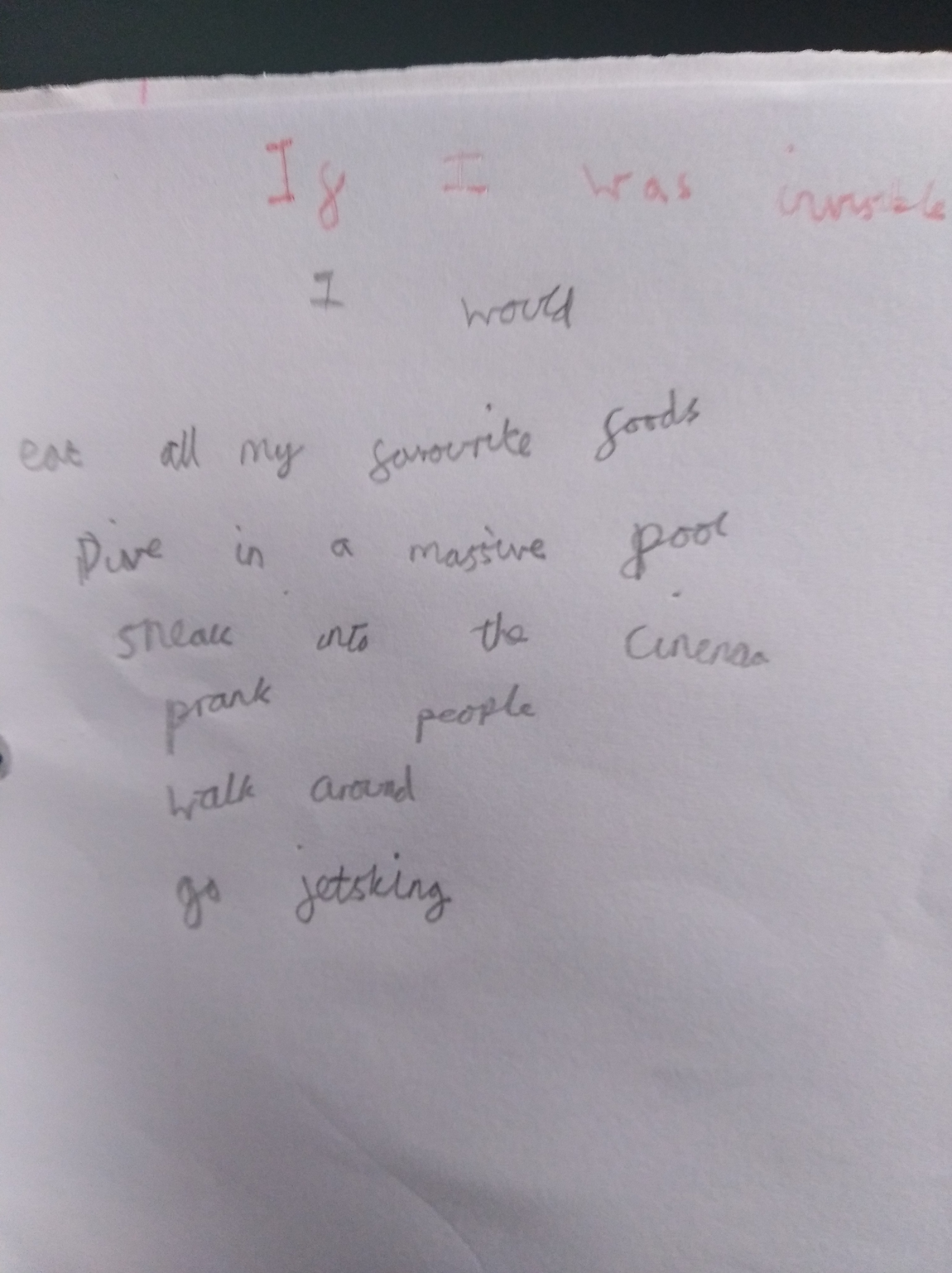 CJS Wednesday Club: These guys made their writing books last week so today we could get stuck into our first writing prompt! What would you do, and where would you go if you were invisible? What an impressive response from everyone! Mostly poems, which was lovely, but also some stories on the go. Fantastic!